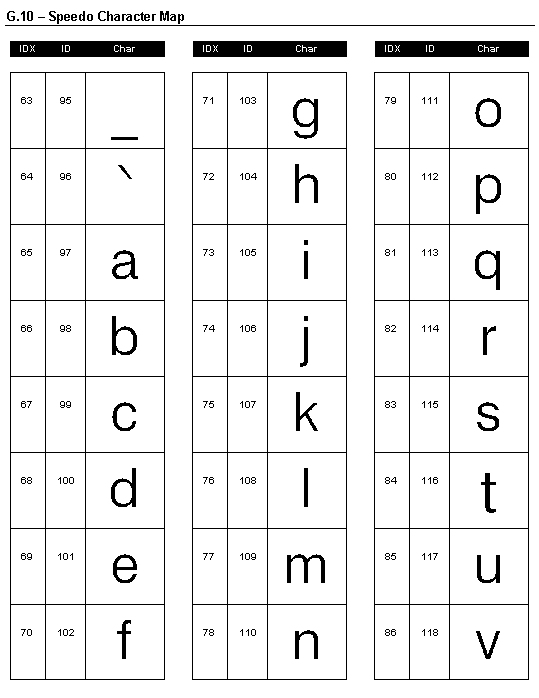 | Character Set ID | A 2-byte character string identifying the character set used for this font. This is usually the second 2 characters in the font filename. The Bitstream International Character Set is '00'. |